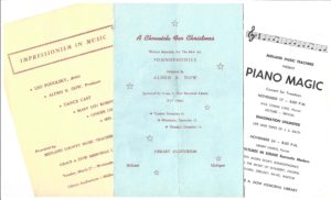 National newspapers and magazines published stories about the new art form, which inspired many people to write to Mr. Dow for advice in setting up their own Somnophonics productions. In November 1959 a third concert incorporating Dream Sound, “Piano Magic,” was held at the Grace A. Dow Library. Scripts and notes for two other productions exist, but unfortunately there is no record of them ever having been performed.