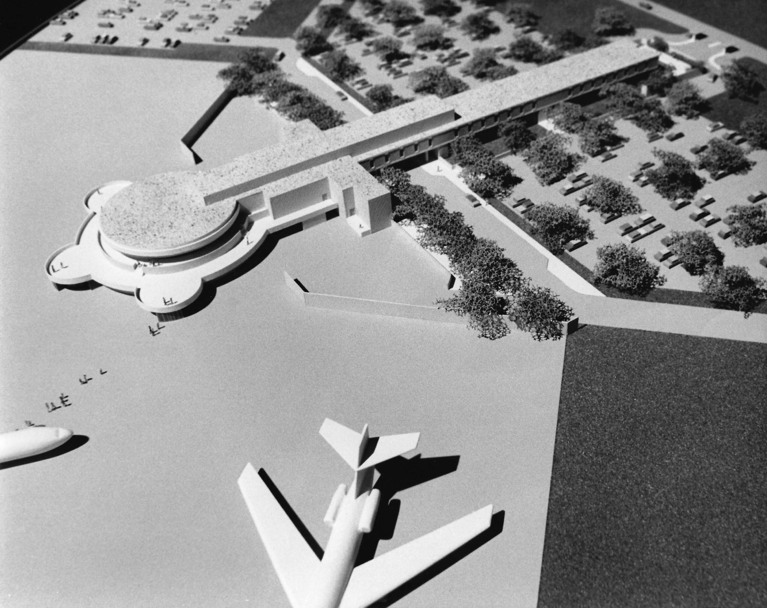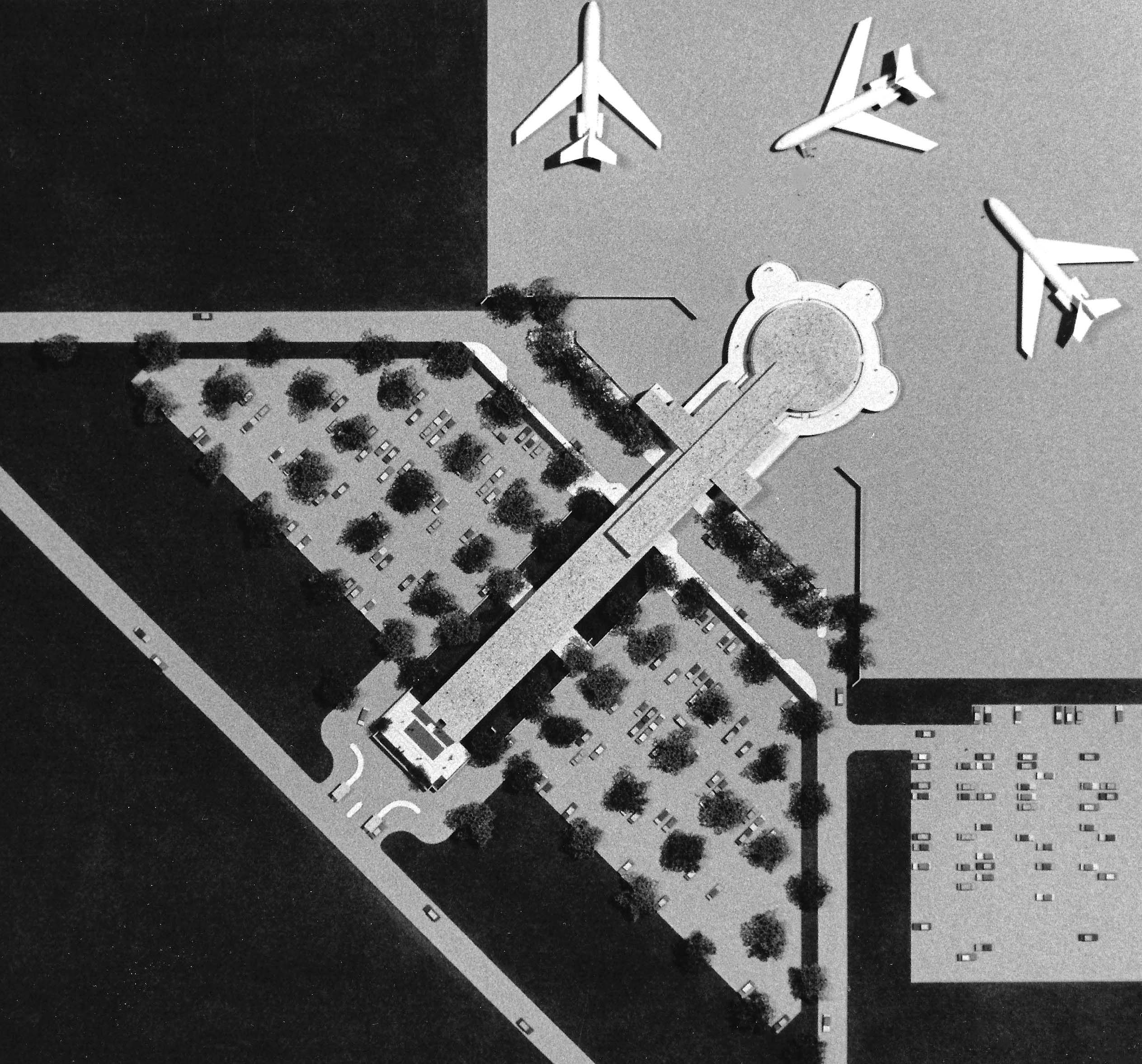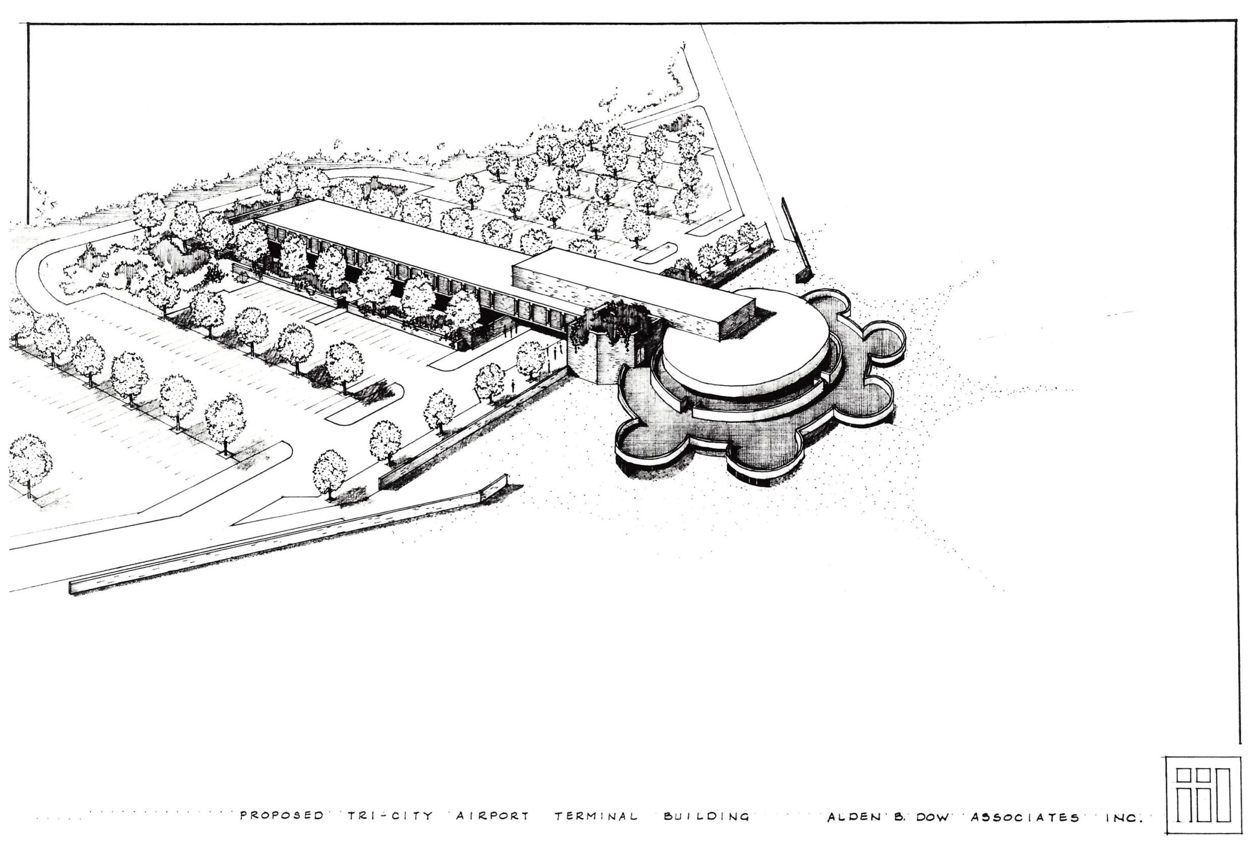 The Tri-City Airport Commission, with representatives from Midland, Bay City, and Saginaw, was formed in the early 1960’s to plan and oversee the construction of a new airport to replace the existing 1955 terminal in Freeland. A detailed proposal for a modern airport terminal complex was prepared by the firm of Alden B. Dow and accepted by the Commission.